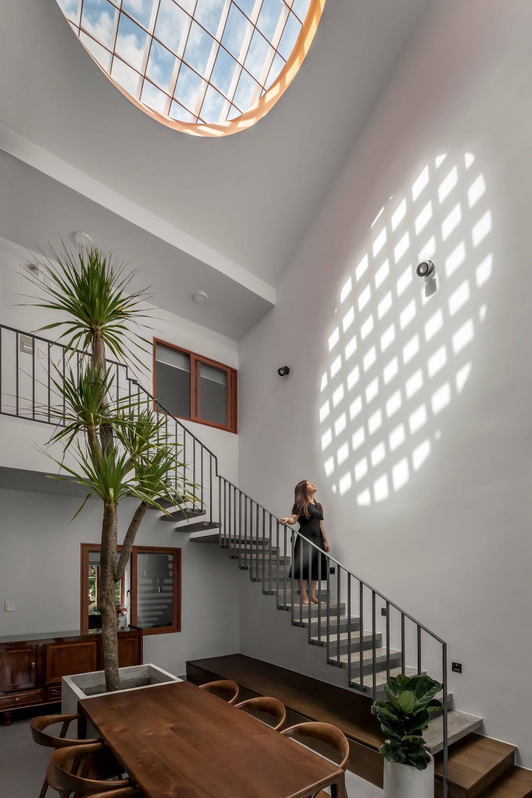 - Thiết kế vị trí phù hợp: Đặt giếng trời ở trung tâm ngôi nhà hoặc những khu vực thiếu sáng và thông gió, như hành lang, phòng khách, hoặc cầu thang.
