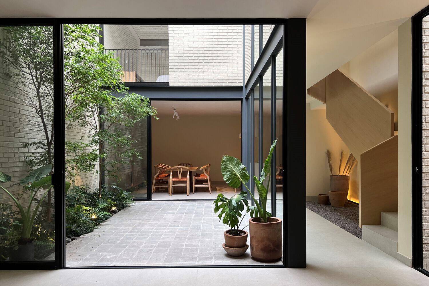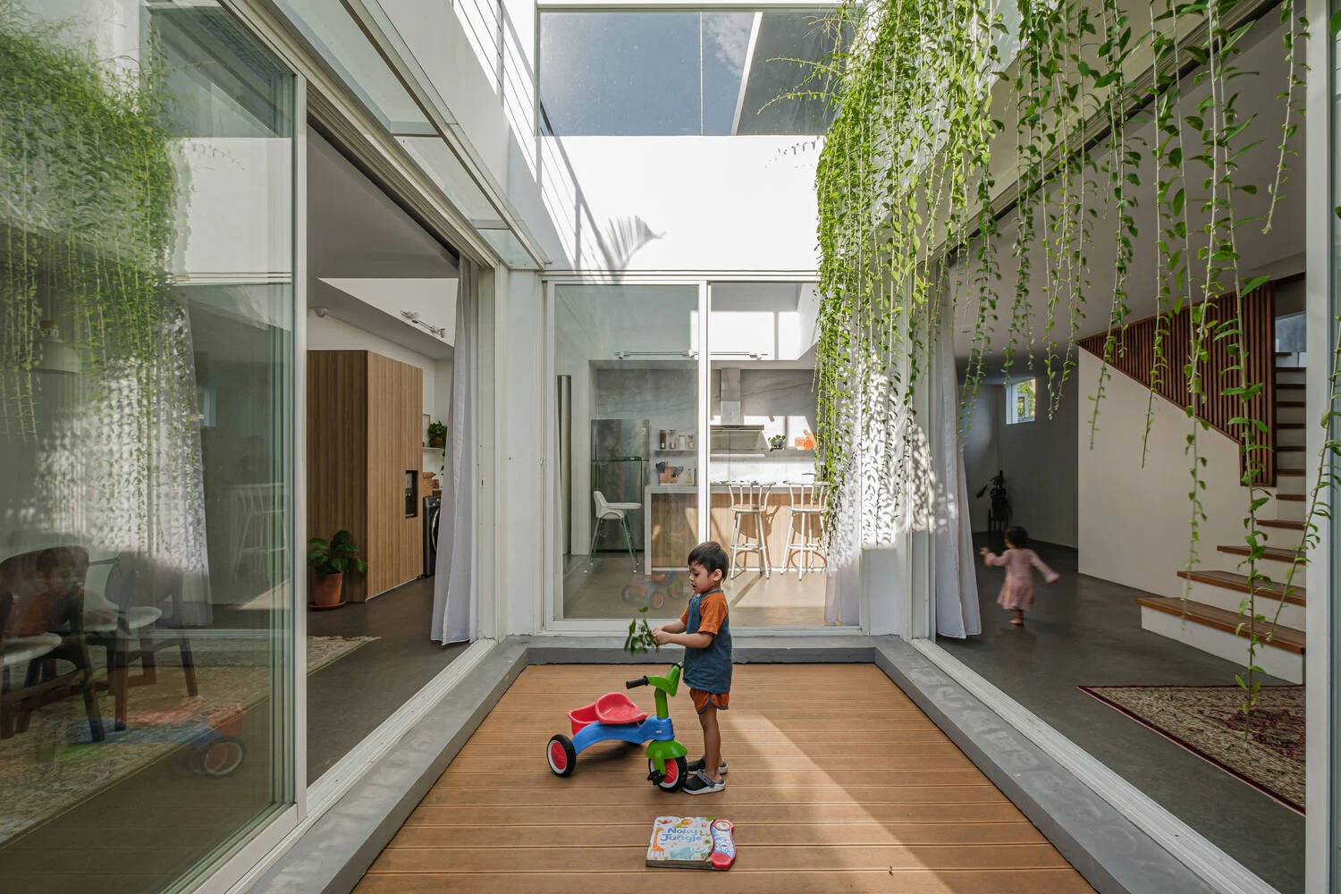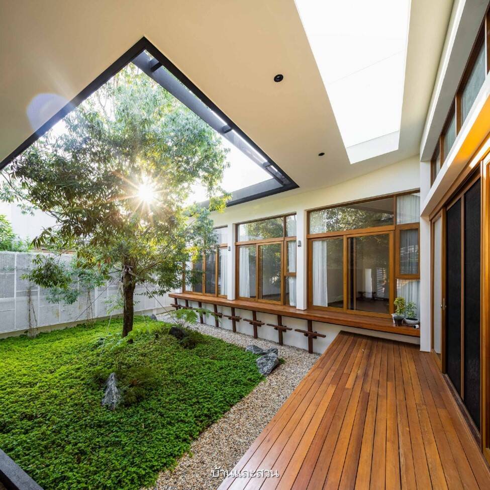 Đây là cách giúp khu vực sân trong trở nên khác lạ và thú vị hơn hẳn. Một nửa phần sân bạn hoàn toàn có thể sử dụng để trồng cây trực tiếp dưới đất. Một nửa còn lại bạn lát nền để đặt nội thất theo nhu cầu như bàn trà, xích đu,... Thiết kế này vừa đảm bảo sự sạch sẽ, an toàn, vừa thỏa mãn sở thích trồng cây chăm hoa của những gia chủ yêu thiên nhiên.