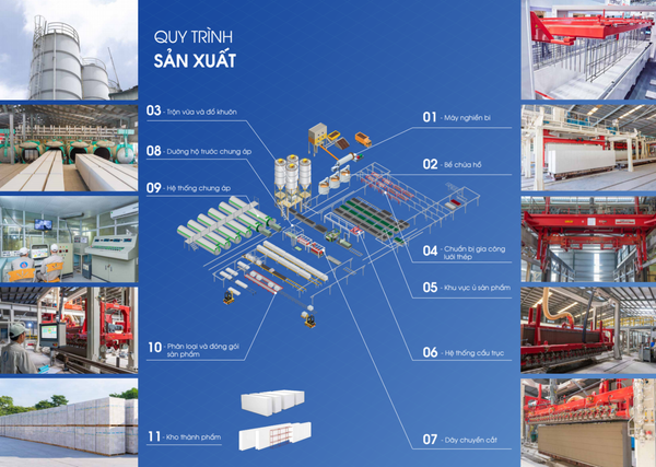 1. Quy trình sản xuất của bê tông khí chưng áp