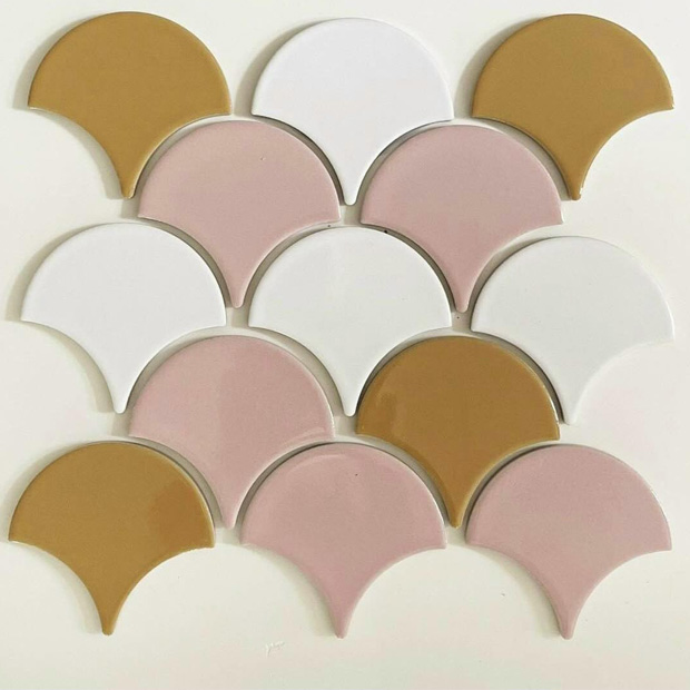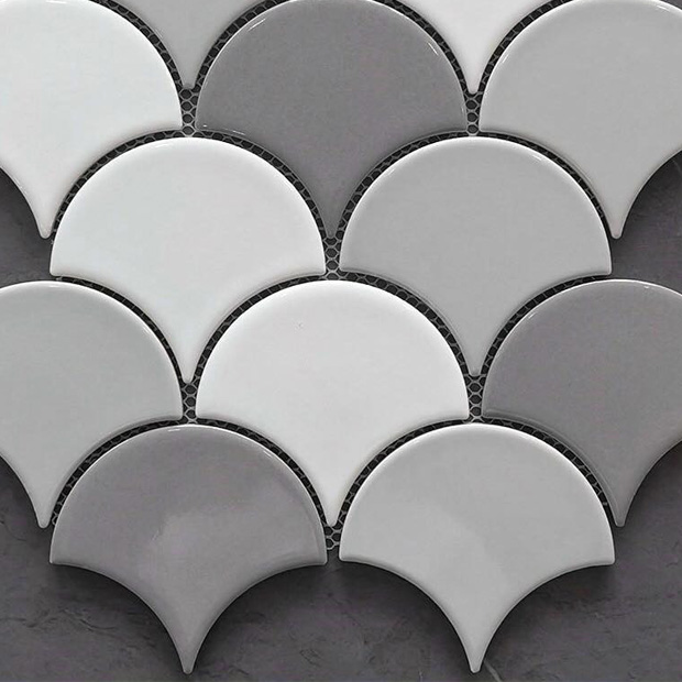 Cũng giống như các loại gạch trang trí khác, ngoài chất liệu truyền thống là gốm sứ, thì hiện nay gạch vảy cá còn được làm từ các loại vật liệu sau : Porcelain phủ men, Đá tự nhiên (natural stone), Thủy tinh