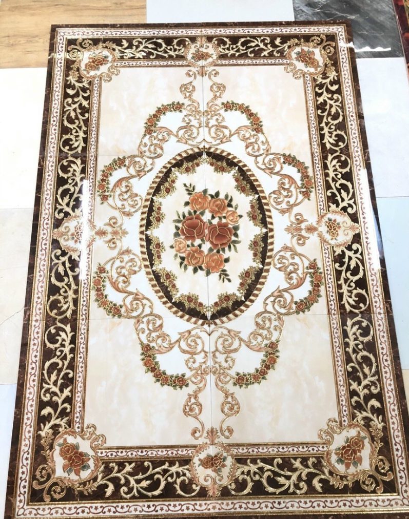 Hiện nay có hai loại gạch thảm trên thị trường là gạch in men và gạch cắt CNC, với gạch in men, chúng được thiết kế sẵn theo từng bộ và không cần đặt hàng trước. Chỉ cần gia chủ đến và lựa chọn kiểu mẫu mã phù hợp với không gian căn nhà.