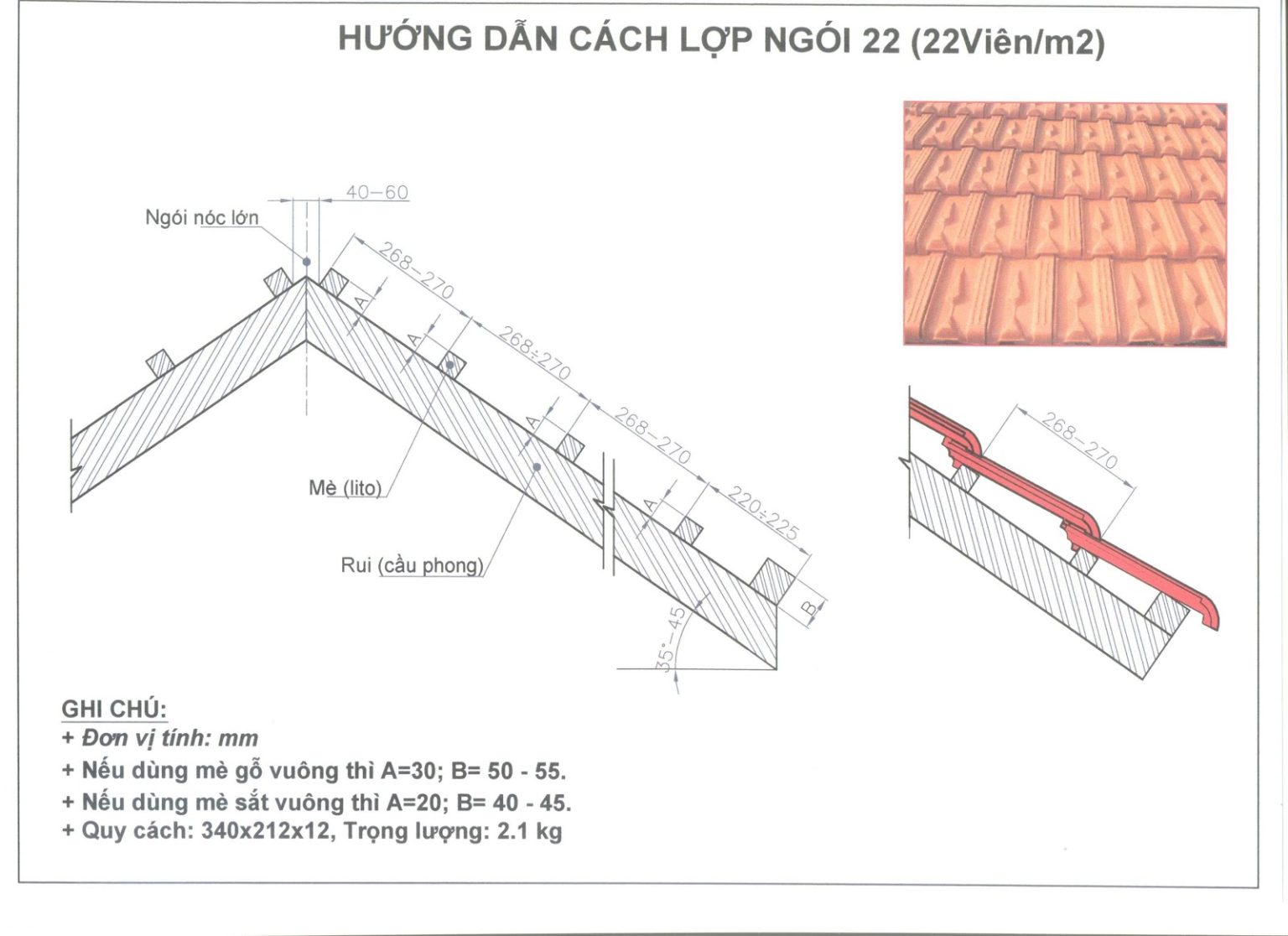 Kiến thức về kích thước ngói 22v/m2