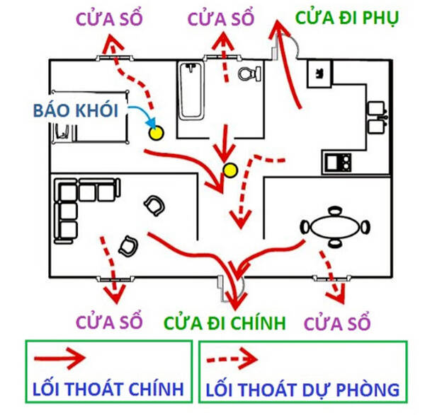 - Cần sắp xếp sẵn một số dụng cụ hỗ trợ thoát hiểm như xà beng, búa, dây… ở những vị trí thích hợp. Trong trường hợp hy hữu đập thẳng tường sang nhà hàng xóm, có thể cứu mạng khi cấp thiết.