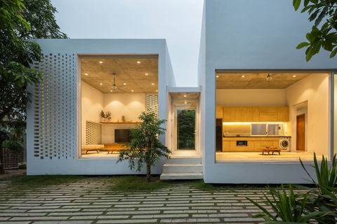 - Trang trí mặt tiền nhà với gạch thông gió: Sự góp mặt của gạch thông gió ở mặt tiền sẽ giúp ngôi nhà giải quyết được những vấn đề chống nóng, cải thiện ánh sáng bên trong nhà, thoáng khí và mang đến nét đẹp hoài cổ kết hợp hiện đại.