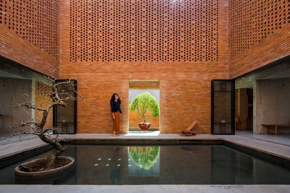 Viên gạch nung góc cạnh và thiếu mềm mại dưới bàn tay khéo léo của những người thợ mà liên kết với nhau để góp phần tạo nên sự độc đáo ở các công trình việt. Bức tường xây thô không trát vữa đã trở thành điểm nhấn chính trong những ngôi nhà phố hiện đại.