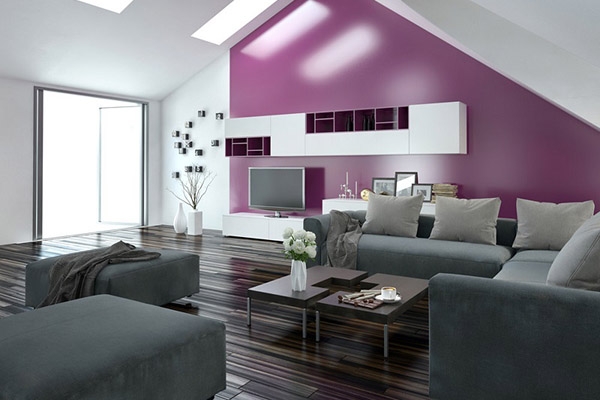 Sử dụng màu tím nhẹ nhàng cho phòng ngủ để tạo cảm giác thư giãn và dễ chịu, có thể phối hợp với màu trắng hoặc xám nhạt để tăng cường sự tinh tế và sang trọng.