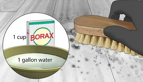 Cách làm: Trộn một cốc (250ml) hàn the với khoảng bốn lít nước. Nhúng bàn chải vào dung dịch rồi chà sạch vết mốc đen. Để khô tự nhiên những vị trí vừa chà, vì hàn the giúp ngăn nấm mốc phát triển trở lại.